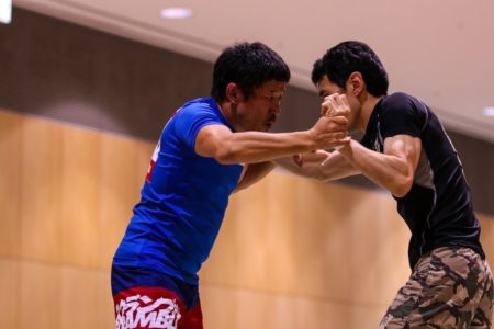 トライフォースの選手・応援・運営陣とQUINTETプロデューサー桜庭和志選手