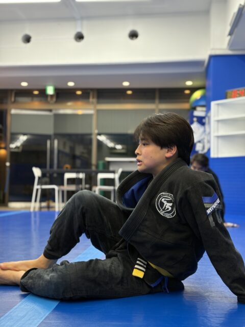 通い始めた頃は、マットの端でずっと座ってましたが、博昭先生に面倒を見てもらいながらまずはここまで到達しました。