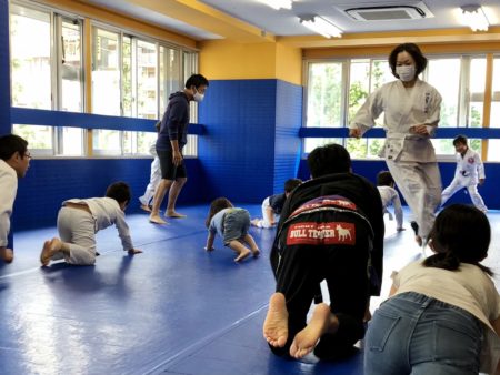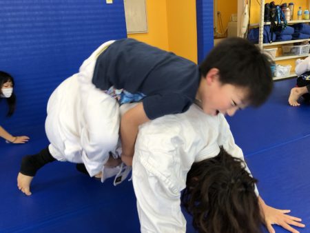 日曜の朝は親子クラスから元気にスタートです。 この日も親子クラスはハイテンションのまま終了いたしました。 様々な種類の運動をして、基礎的な運動能力の向上を図っています。 今後必要と思われる受け身の指導も致しました。 怪我もしにくいように育って欲しいです。 キッズクラスはラダーもやっています。 この日はトライアングルチョークを指導いたしました。 お疲れ様でした。この日はテイクダウンもしっかりやっています。 元気よくぶつかって来てくれます。 親子クラスと比べ、ゆっくりテクニック指導の時間も取り、競技的な内容が増えていきます。 また皆で頑張っていきましょう。